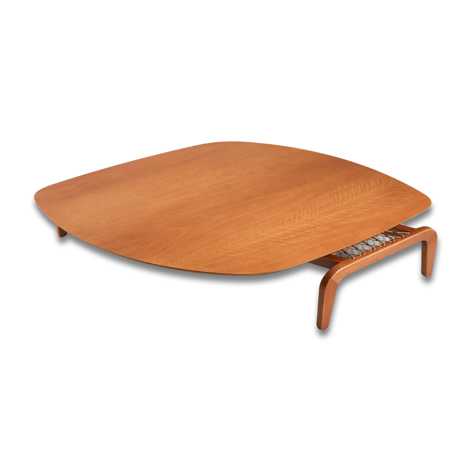 • Mesa de Centro Escultural: O coração do ambiente. Com seu design orgânico e fluido, esta mesa em madeira nobre com acabamento impecável adiciona uma dimensão artística ao living. É o local perfeito para receber e exibir seus adornos favoritos.